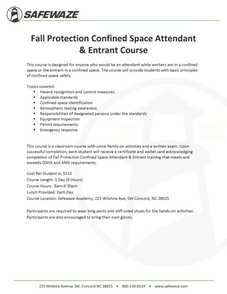 Pre-requisite: Fall Protection Confined Space Attendant & Entrant Course
