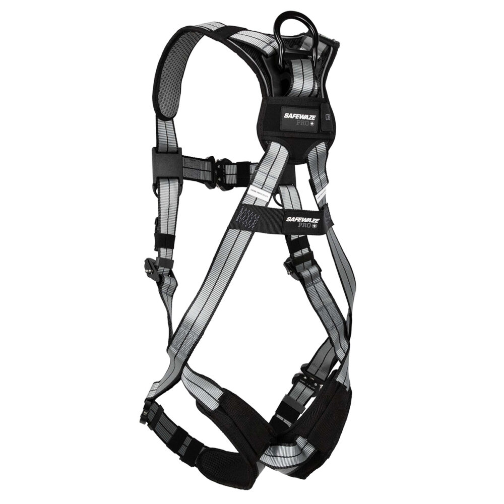 The PRO+ Slate Harness is the embodiment of dependable performance and superior comfort. High strength abrasion resistant webbing and advanced technical padding, composed of moisture wicking linings and closed cell foam, provide all-day ease of use and extended product life. Select models include shoulder-mounted retrieval D-rings for confined space entry and rescue applications. Equipped with an integrated SRL channel, lightweight aluminum D-rings, quick-connect buckles and torso adjusters. Offered in a variety of configurations.