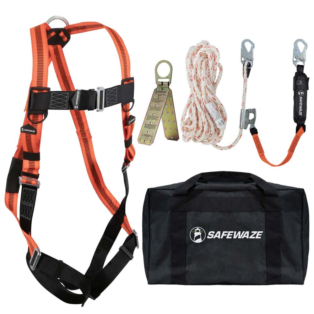 An economy collection of materials for roofing – harness, lifeline and anchor – conveniently packaged in a heavy duty carry bag.
