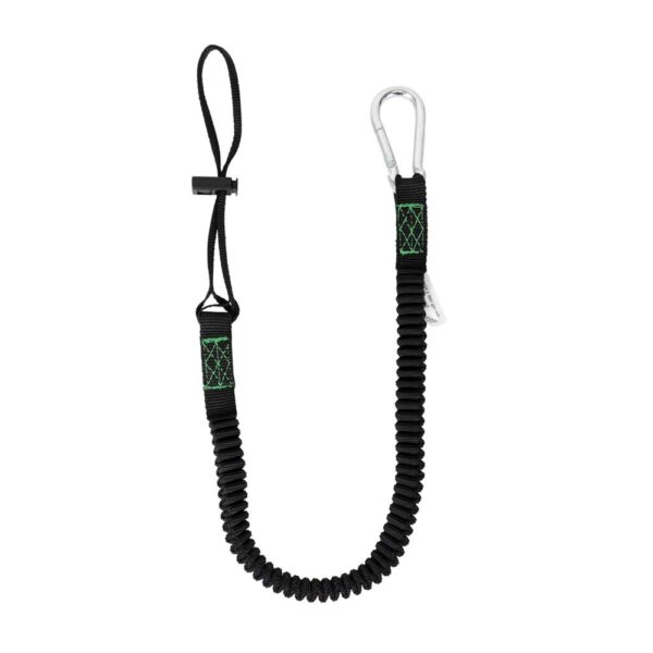 The 15 lb. Elasticated Tool Lanyard features a cinch loop with a cord lock on one end and carabiner on the other. Elasticated construction creates a greater range of use, making this one of the most versatile and desired tether solutions.