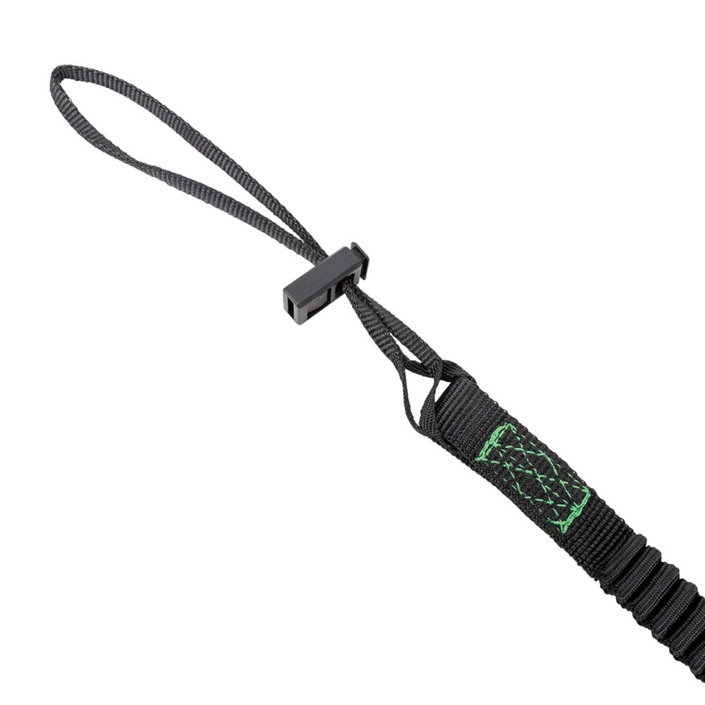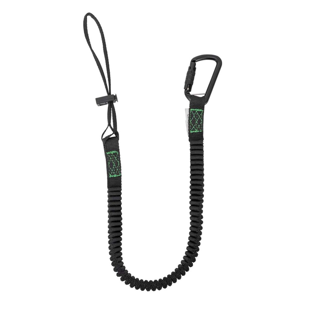 The 15 lb. Elasticated Tool Tether features a cinch loop with a cord lock on one end and twist lock carabiner on the other. The elasticated construction creates a greater range of use, making this one of the most versatile and widely used tether solutions.