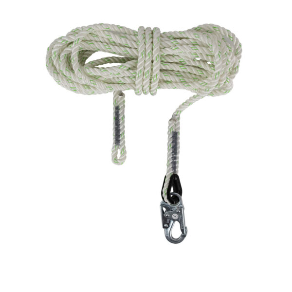 The PRO Vertical Lifeline built with premium polyester rope is significantly stronger than synthetic versions as well as UV, cut and abrasion-resistant. Built with termination on one end and snap hook on other.